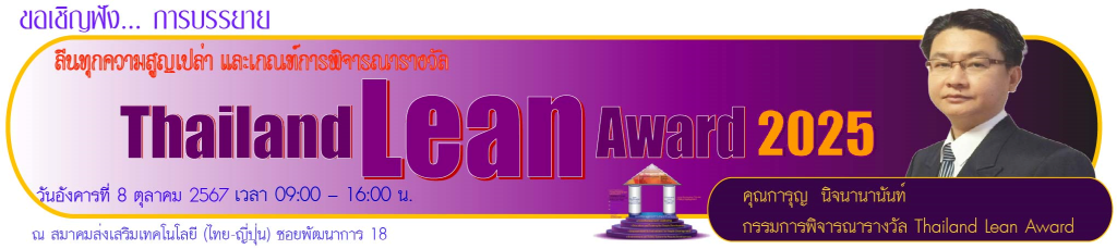 เชิญฟัง…บรรยายพิเศษ Thailand Lean Award 2025