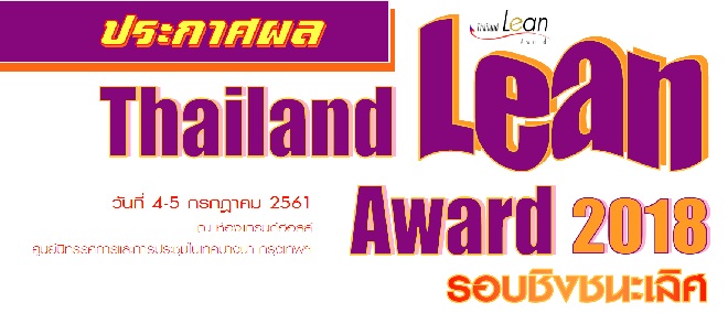 ขอเชิญส่งผลการดาเนินงานระบบ Lean เข้าร่วมประกวด Thailand Lean Award 2018